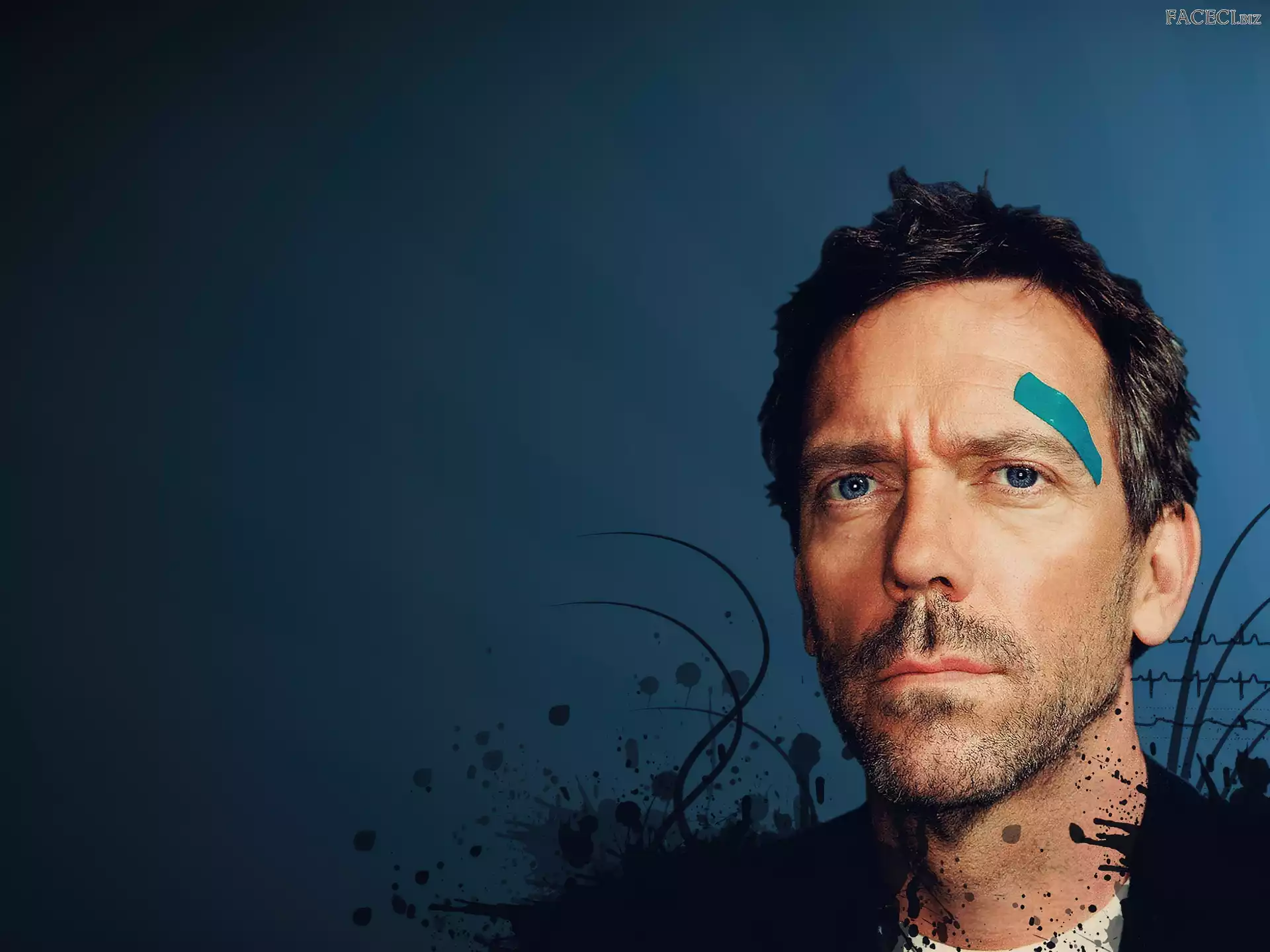 Dr. House, Hugh Lauriego, Oczy, Niebieskie Aktorzy, Hugh Laurie, Dr House, Serial Wentworth Miller, okulary Hugh Lauriego ciemna koszula, Dominic Monaghan Hugh Jackman, skórzana kurtka Karl Urban Okulary, Aktor, Jason Statham sznurem, Ashton Kutcher, związany Serial, Lost, Josh Holloway, Zagubieni Zmierzch, Robert Pattinson Hugh Lauriego, Dr. House czarna bluzka, Dominic Purcell włosy, Ashton Kutcher, lina
